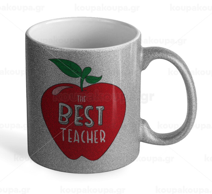 Best teacher, Κούπα Ασημένια Glitter που γυαλίζει, κεραμική, 330ml