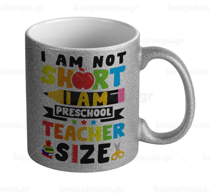 I Am Not Short I Am Preschool Teacher Size, Κούπα Ασημένια Glitter που γυαλίζει, κεραμική, 330ml