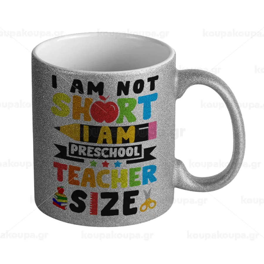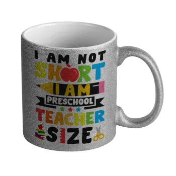 I Am Not Short I Am Preschool Teacher Size, Κούπα Ασημένια Glitter που γυαλίζει, κεραμική, 330ml