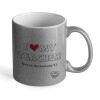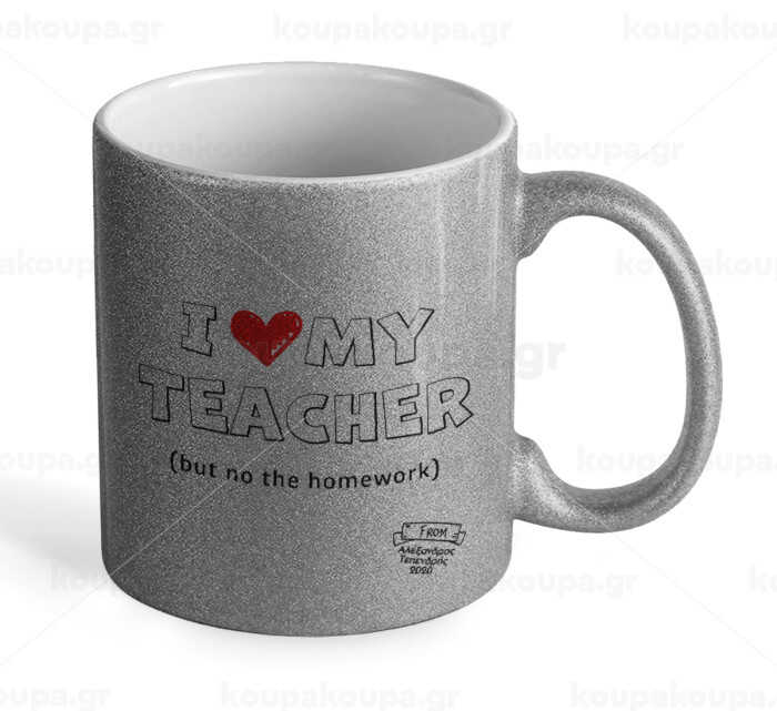 i love my teacher but no the homework outline, Κούπα Ασημένια Glitter που γυαλίζει, κεραμική, 330ml