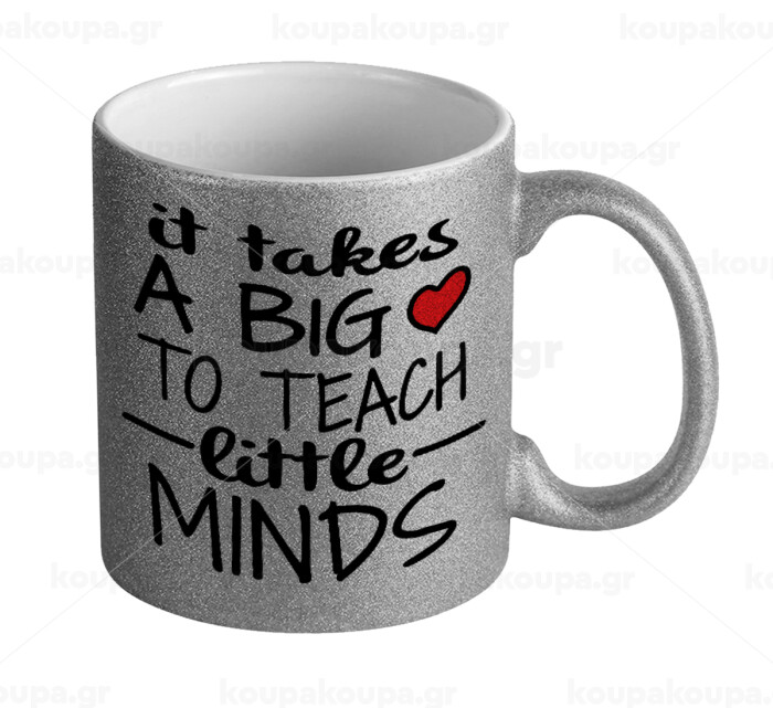It takes big heart to teach little minds, Κούπα Ασημένια Glitter που γυαλίζει, κεραμική, 330ml