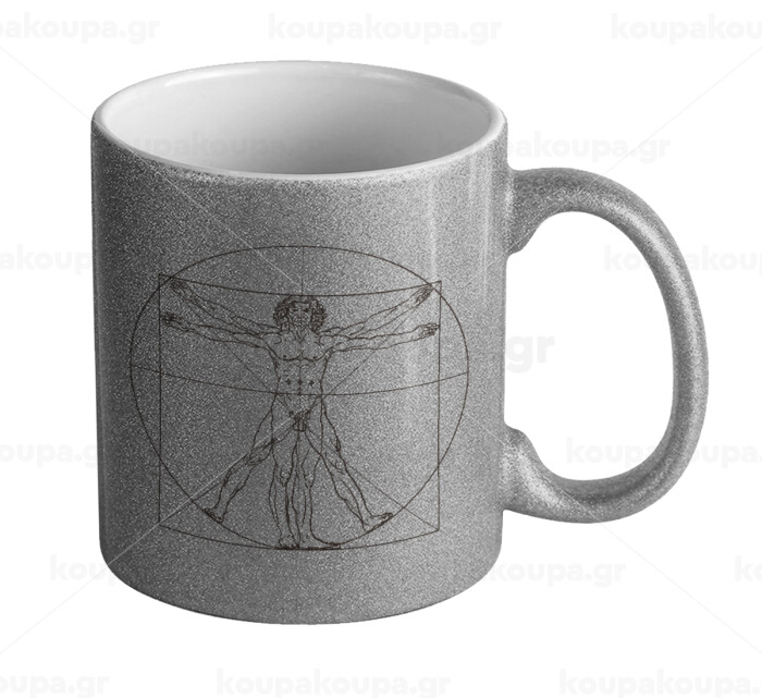 Leonardo da vinci Vitruvian Man, Κούπα Ασημένια Glitter που γυαλίζει, κεραμική, 330ml