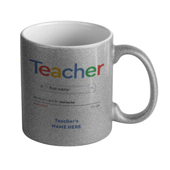 Searching for Best Teacher..., Κούπα Ασημένια Glitter που γυαλίζει, κεραμική, 330ml