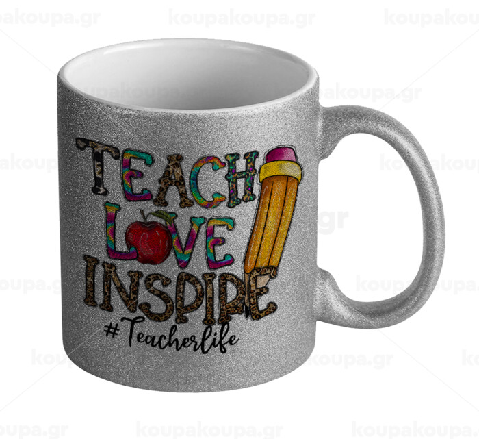 Teach, Love, Inspire, Κούπα Ασημένια Glitter που γυαλίζει, κεραμική, 330ml