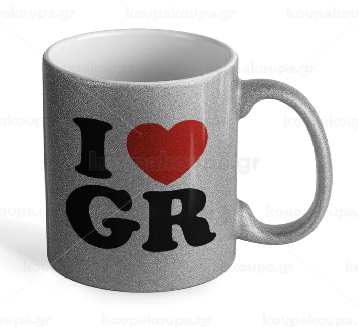 I Love GR, Κούπα Ασημένια Glitter που γυαλίζει, κεραμική, 330ml
