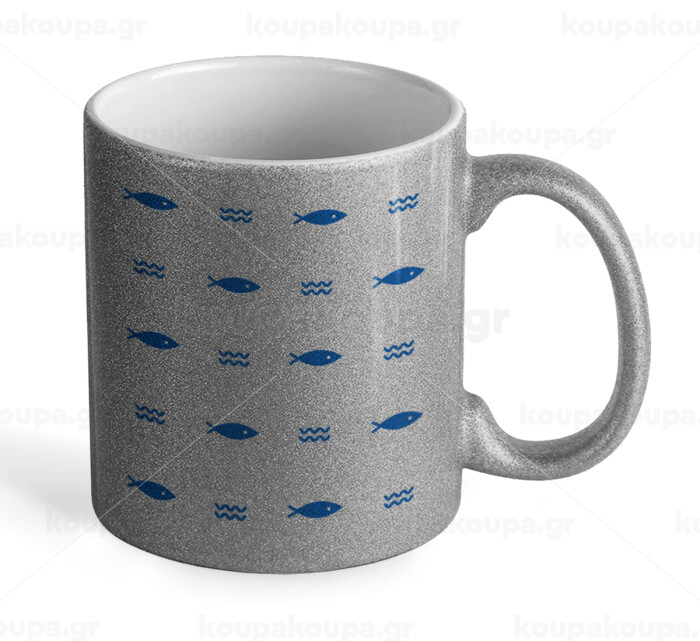 Fishing, Κούπα Ασημένια Glitter που γυαλίζει, κεραμική, 330ml