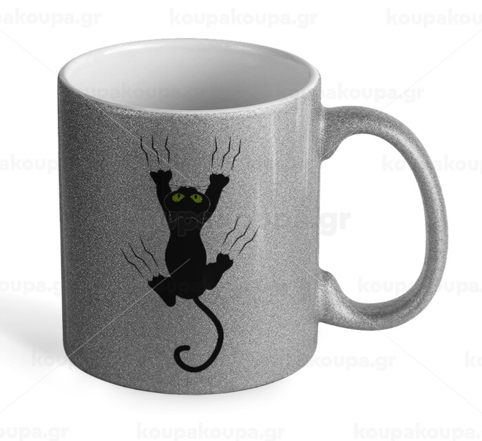 cat grabbing, Κούπα Ασημένια Glitter που γυαλίζει, κεραμική, 330ml