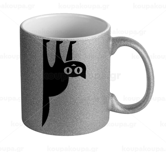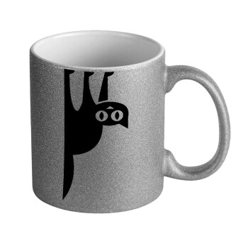 Cat upside down, Κούπα Ασημένια Glitter που γυαλίζει, κεραμική, 330ml