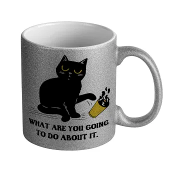 CAT, what are you going to do about it!, Κούπα Ασημένια Glitter που γυαλίζει, κεραμική, 330ml