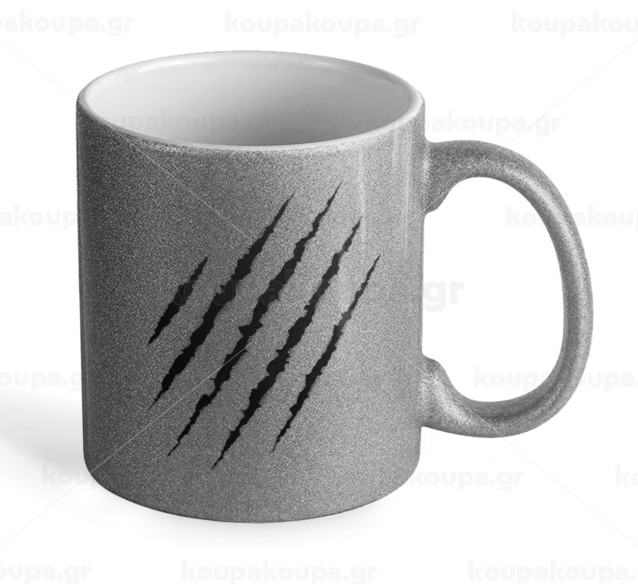 Claw scratch, Κούπα Ασημένια Glitter που γυαλίζει, κεραμική, 330ml