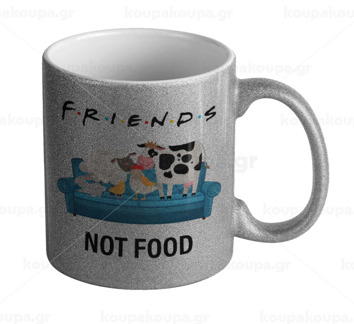 friends, not food, Κούπα Ασημένια Glitter που γυαλίζει, κεραμική, 330ml