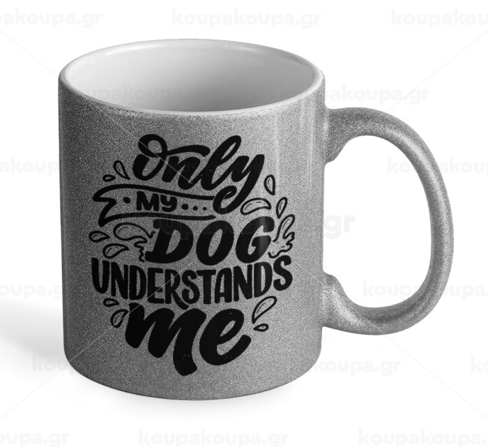 Only my DOG, understands me, Κούπα Ασημένια Glitter που γυαλίζει, κεραμική, 330ml