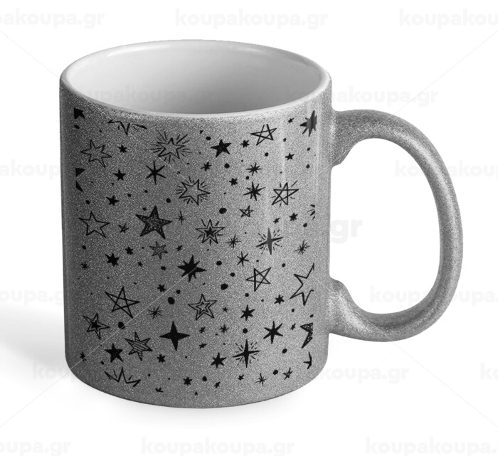 Doodle Stars, Κούπα Ασημένια Glitter που γυαλίζει, κεραμική, 330ml