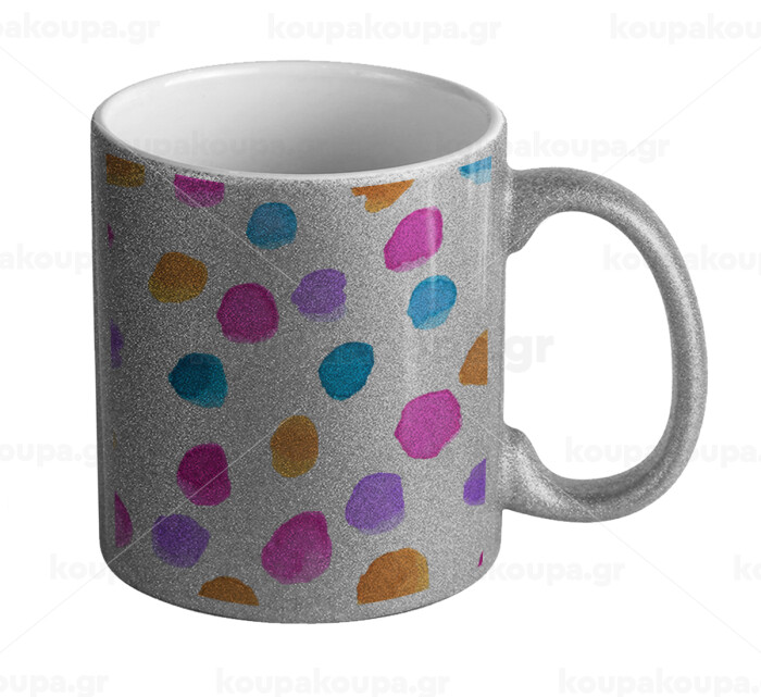 Watercolor dots, Κούπα Ασημένια Glitter που γυαλίζει, κεραμική, 330ml
