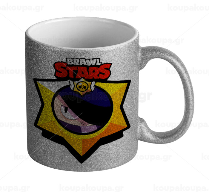 Brawl Stars Edgar, Κούπα Ασημένια Glitter που γυαλίζει, κεραμική, 330ml