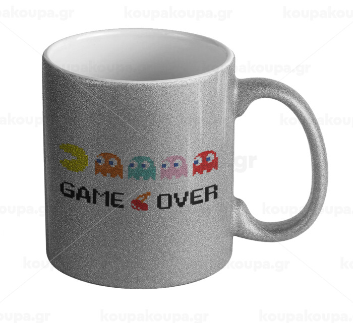 GAME OVER pac-man, Κούπα Ασημένια Glitter που γυαλίζει, κεραμική, 330ml