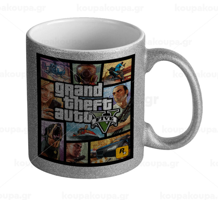 GTA V, Κούπα Ασημένια Glitter που γυαλίζει, κεραμική, 330ml