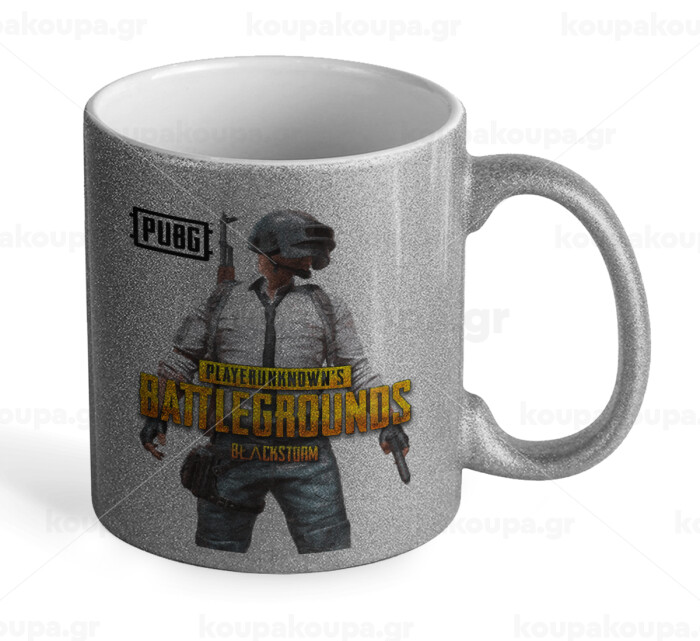 PUBG battleground royale, Κούπα Ασημένια Glitter που γυαλίζει, κεραμική, 330ml