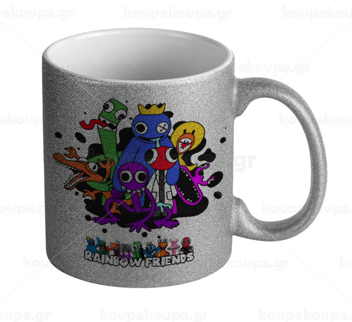 Rainbow friends, Κούπα Ασημένια Glitter που γυαλίζει, κεραμική, 330ml