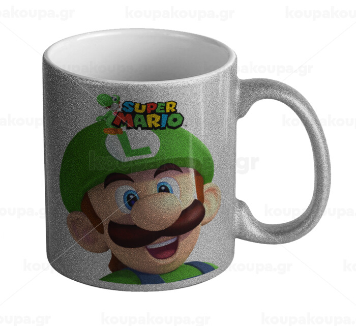 Super mario Luigi, Κούπα Ασημένια Glitter που γυαλίζει, κεραμική, 330ml