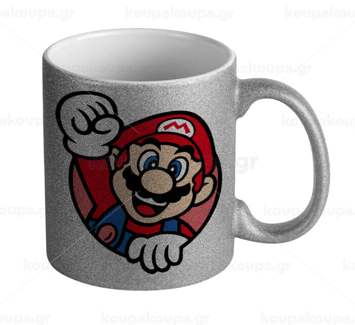 Super mario win, Κούπα Ασημένια Glitter που γυαλίζει, κεραμική, 330ml