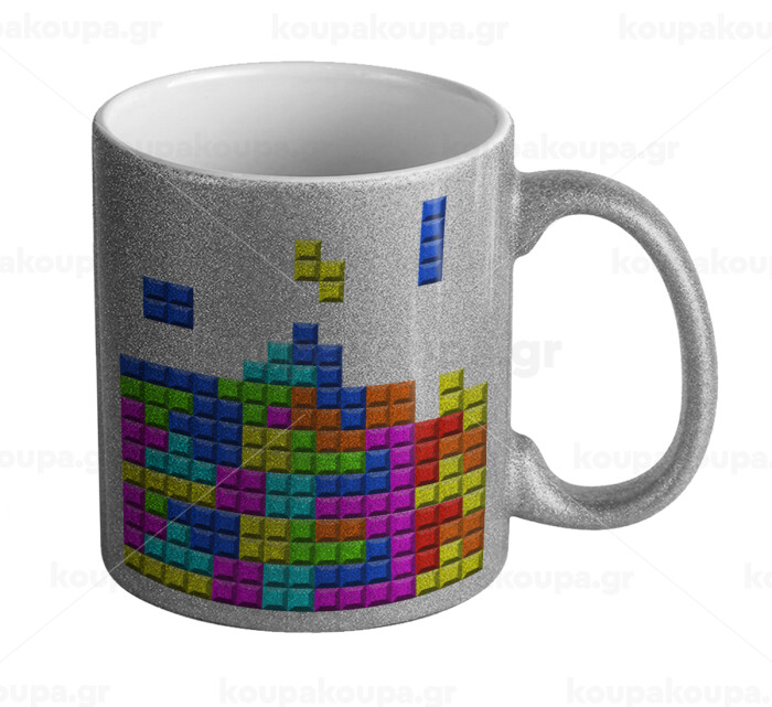 Tetris blocks, Κούπα Ασημένια Glitter που γυαλίζει, κεραμική, 330ml