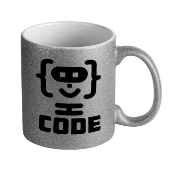 Code Heroes symbol, Κούπα Ασημένια Glitter που γυαλίζει, κεραμική, 330ml