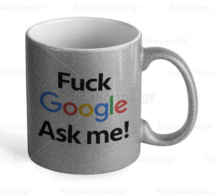 Fuck Google, Ask me!, Κούπα Ασημένια Glitter που γυαλίζει, κεραμική, 330ml