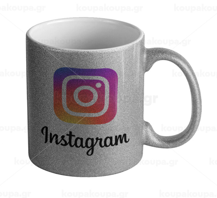 Instagram, Κούπα Ασημένια Glitter που γυαλίζει, κεραμική, 330ml