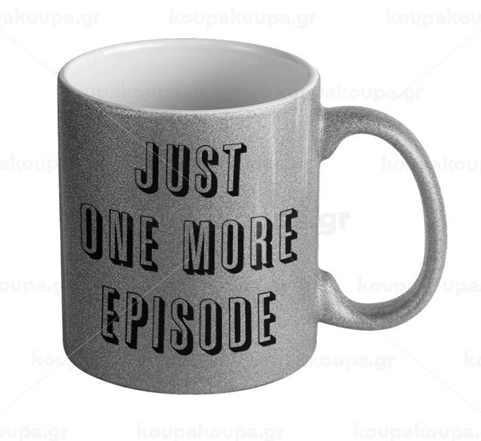 JUST ONE MORE EPISODE, Κούπα Ασημένια Glitter που γυαλίζει, κεραμική, 330ml