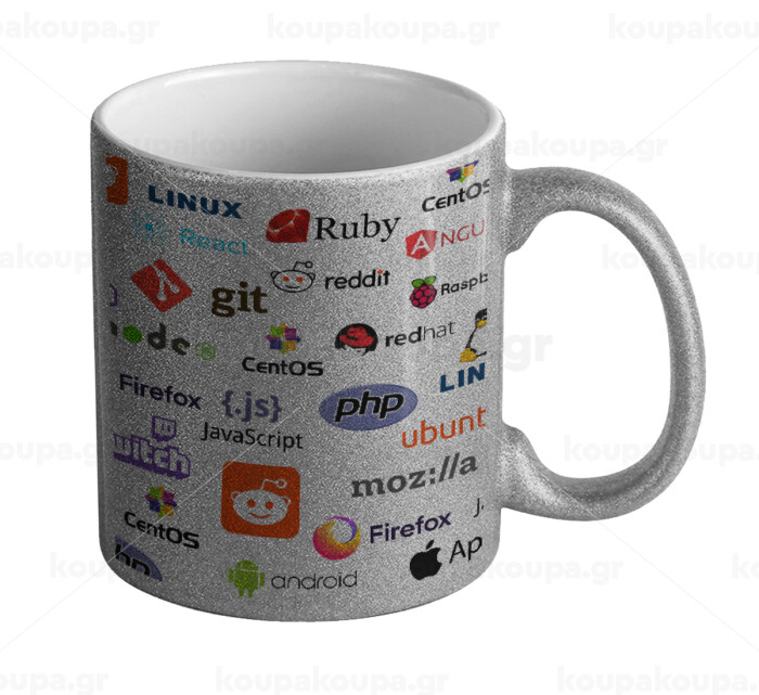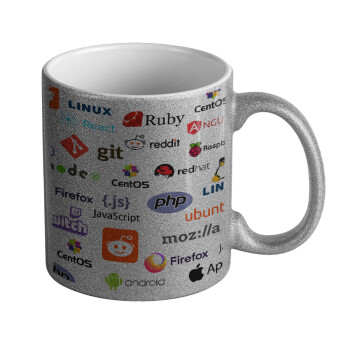 Tech logos, Κούπα Ασημένια Glitter που γυαλίζει, κεραμική, 330ml
