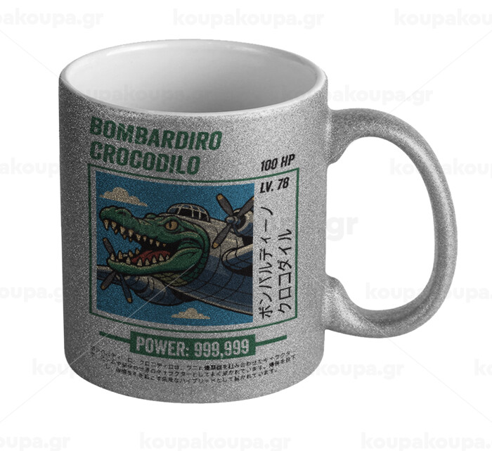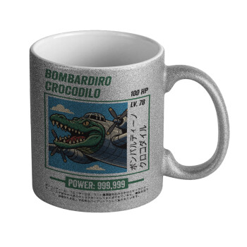 Bombardiro Crocodilo, Κούπα Ασημένια Glitter που γυαλίζει, κεραμική, 330ml