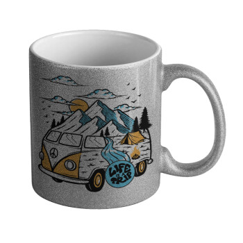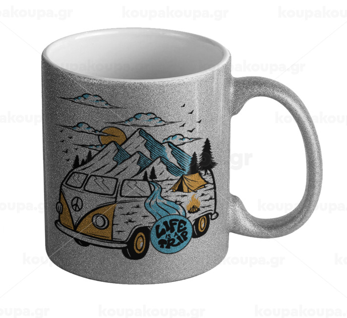 Life is a trip, Κούπα Ασημένια Glitter που γυαλίζει, κεραμική, 330ml