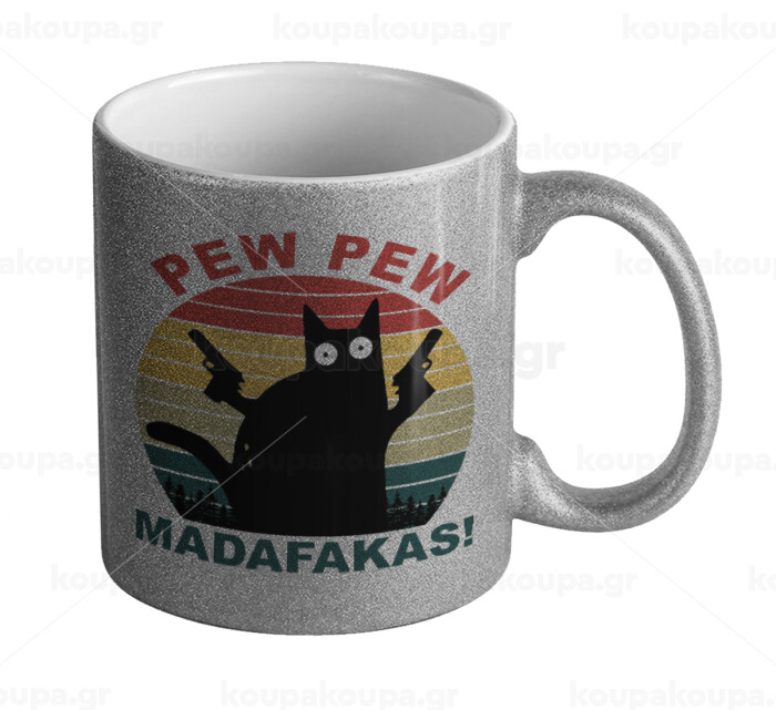 PEW PEW madafakas, Κούπα Ασημένια Glitter που γυαλίζει, κεραμική, 330ml