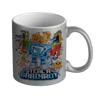 Steal a Brainrot Six Seven, Κούπα Ασημένια Glitter που γυαλίζει, κεραμική, 330ml