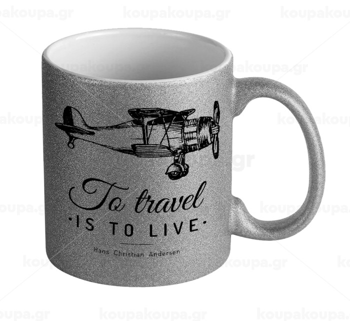 To travel is to live, Κούπα Ασημένια Glitter που γυαλίζει, κεραμική, 330ml