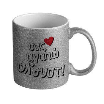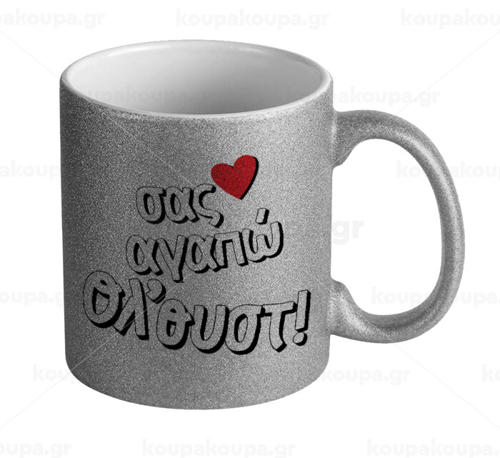 Σας αγαπώ όλ'ουστ!, Κούπα Ασημένια Glitter που γυαλίζει, κεραμική, 330ml