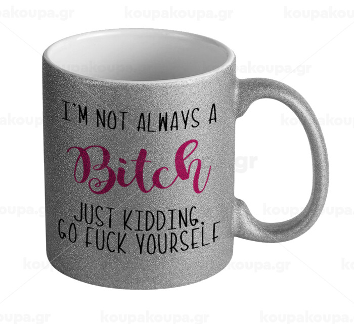 I'm not always a bitch, just kidding go f..k yourself , Κούπα Ασημένια Glitter που γυαλίζει, κεραμική, 330ml