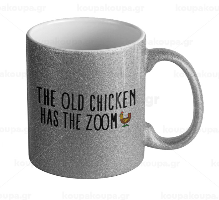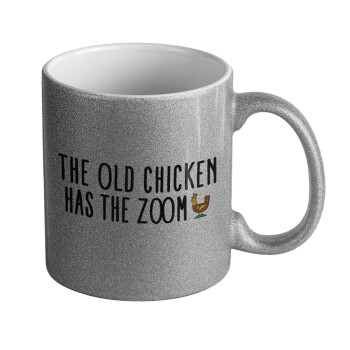 The old chicken has the zoom, Κούπα Ασημένια Glitter που γυαλίζει, κεραμική, 330ml