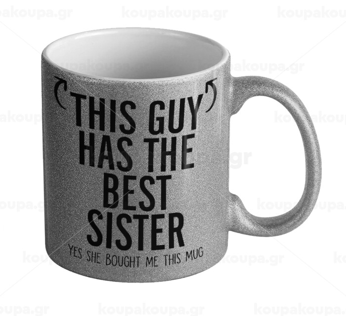 This guy has the best Sister, Κούπα Ασημένια Glitter που γυαλίζει, κεραμική, 330ml