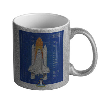 Nasa Space Shuttle, Κούπα Ασημένια Glitter που γυαλίζει, κεραμική, 330ml