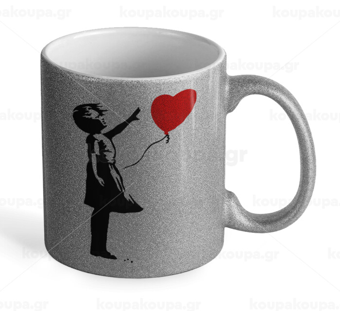 Banksy (Hope), Κούπα Ασημένια Glitter που γυαλίζει, κεραμική, 330ml