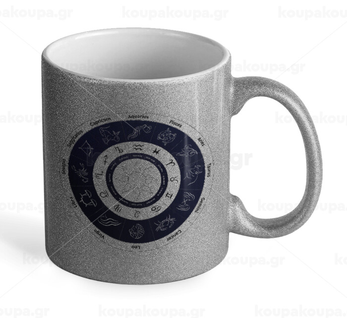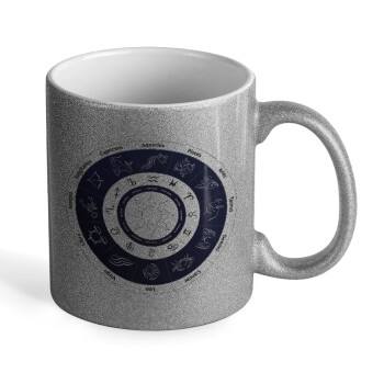 Ζωδιακός κύκλος, Κούπα Ασημένια Glitter που γυαλίζει, κεραμική, 330ml