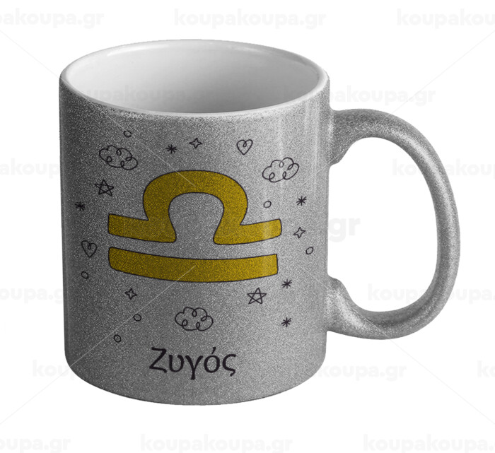 Ζώδια Ζυγός, Κούπα Ασημένια Glitter που γυαλίζει, κεραμική, 330ml
