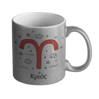 Ζώδια Κριός, Κούπα Ασημένια Glitter που γυαλίζει, κεραμική, 330ml