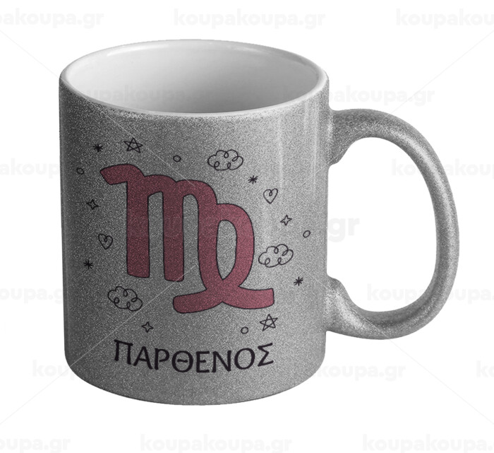 Ζώδια Παρθένος, Κούπα Ασημένια Glitter που γυαλίζει, κεραμική, 330ml