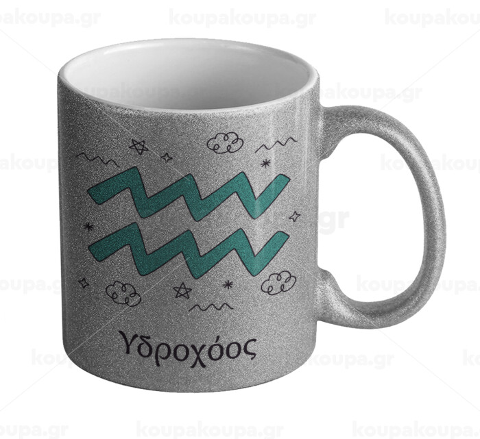 Ζώδια Υδροχόος, Κούπα Ασημένια Glitter που γυαλίζει, κεραμική, 330ml