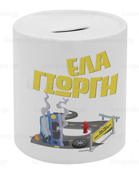 Έλα Γιώργη, πω πω μια στροφάρα, Κουμπαράς πορσελάνης με τάπα
