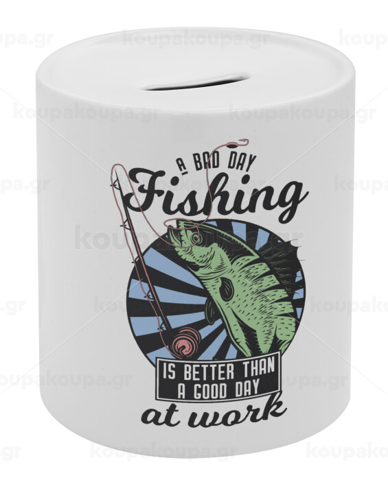 A bad day FISHING is better than a good day at work, Κουμπαράς πορσελάνης με τάπα