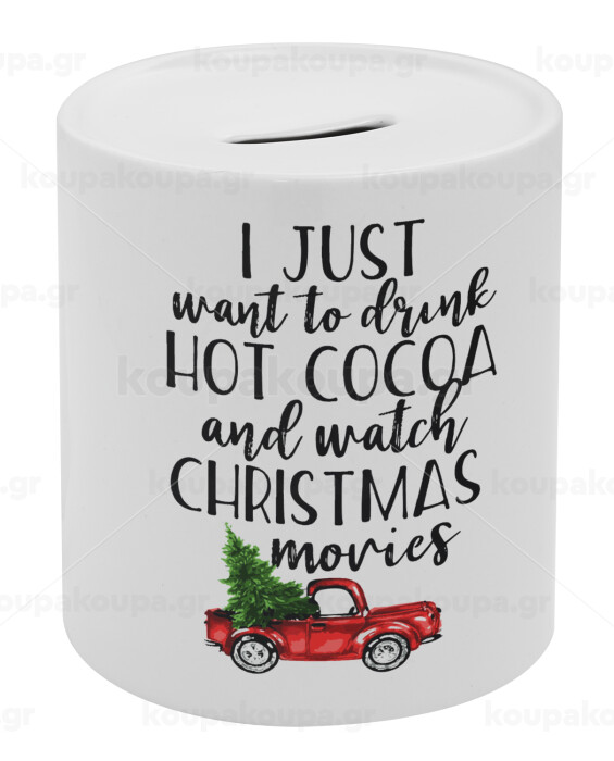 I just want to drink hot cocoa and watch christmas movies pickup car, Κουμπαράς πορσελάνης με τάπα
